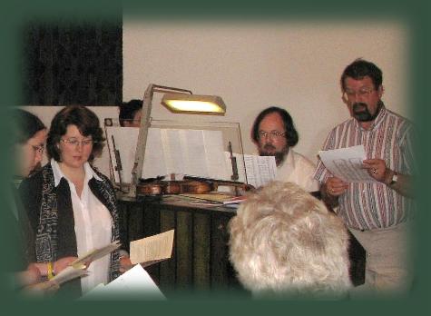 Fulda, St. Josef, Juni 2006: Simon Dach und seine ehrenamtlichen Musiker im Abendgottesdienst. Orgel: Bardo Becker
